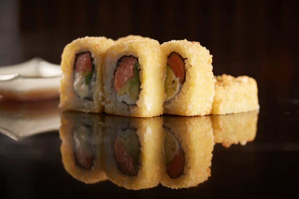 Salmón, palta y phila, envuelto en arroz, rebozado en panko por fuera.